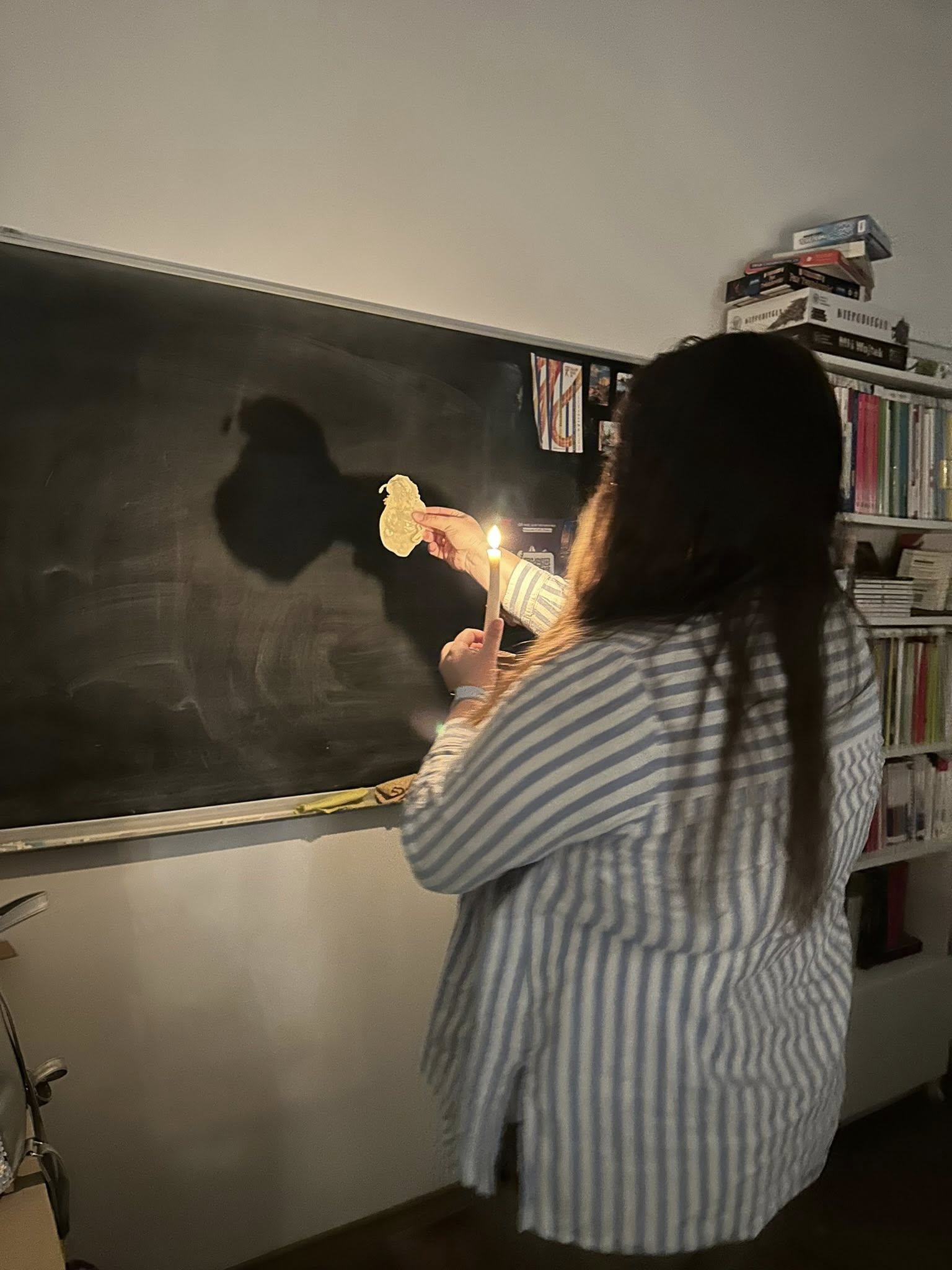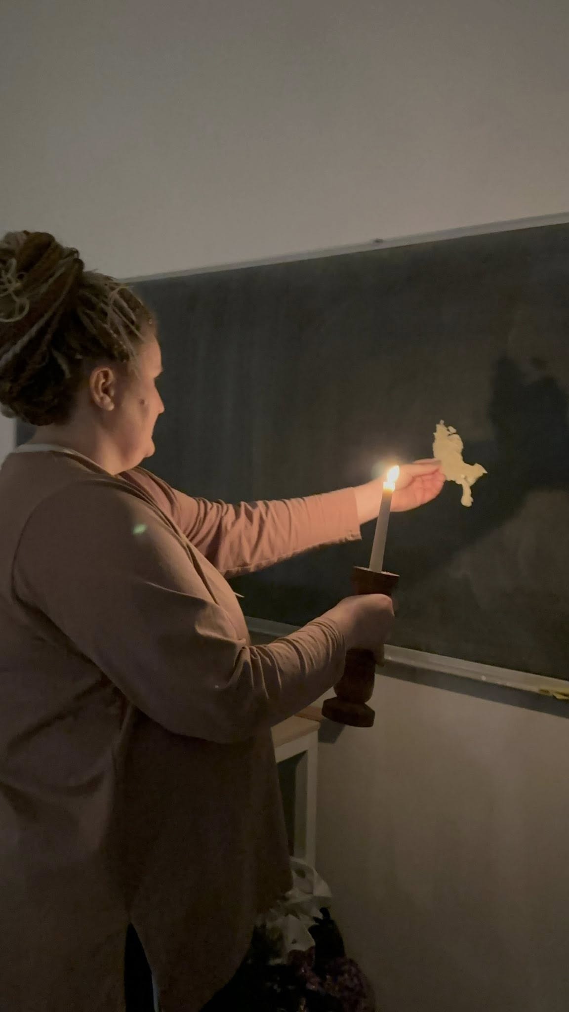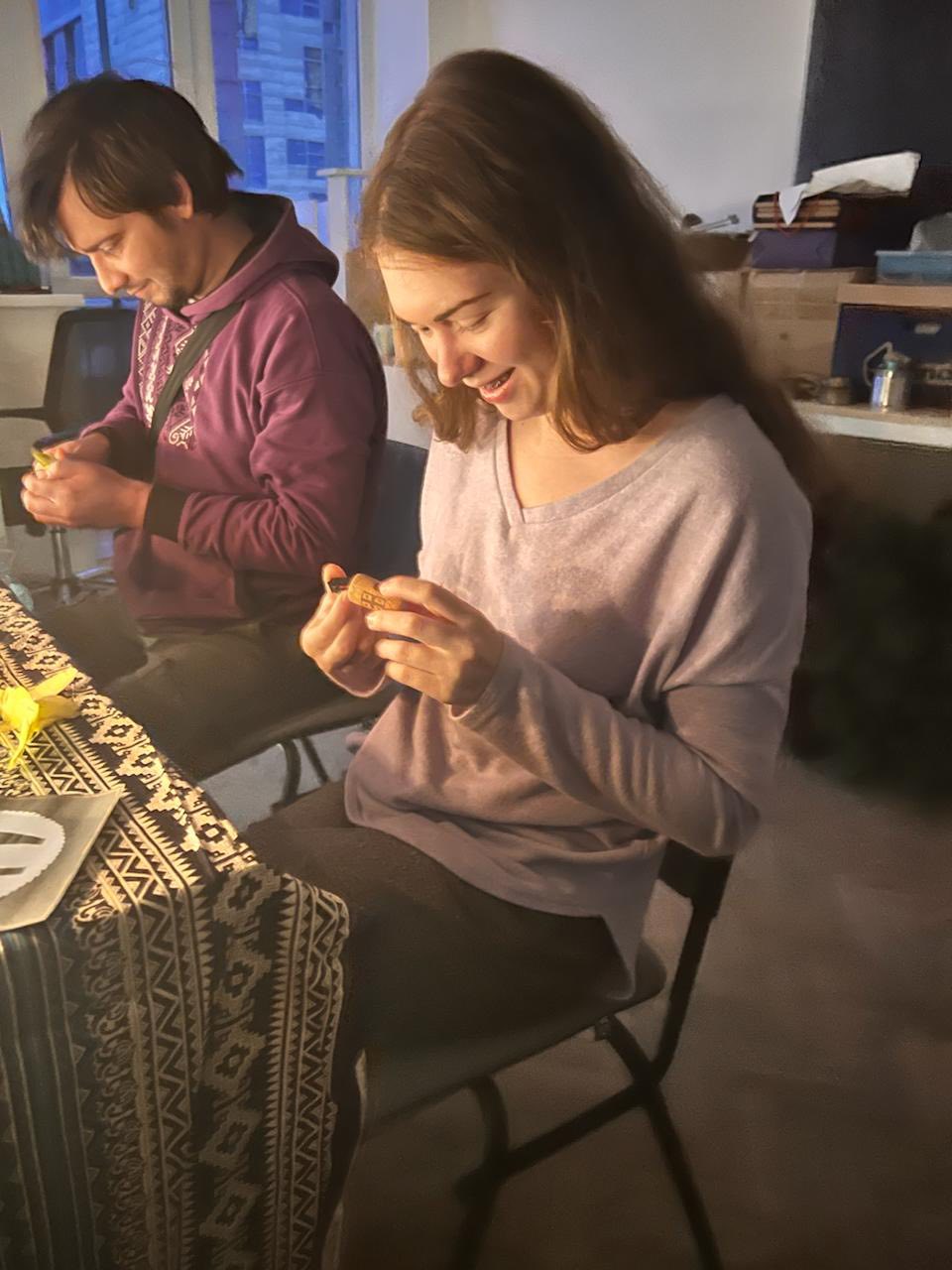 А потім настала найвеселіша частина вечора. За чашками гарячого чаю ми вгадували ім’я майбутнього «нареченого» чи «нареченої» за допомогою яблучної скоринки, витягували з таємного мішечка символи-пророцтва найближчого року, а головне — не без щорічної допомоги пані Маргарити — лили віск через ключ і розшифровували химерні фігури майбутнього. Тут кожен міг проявити фантазію й креативність: насміялися, нагомонілися й точно виносили з собою гарний настрій.