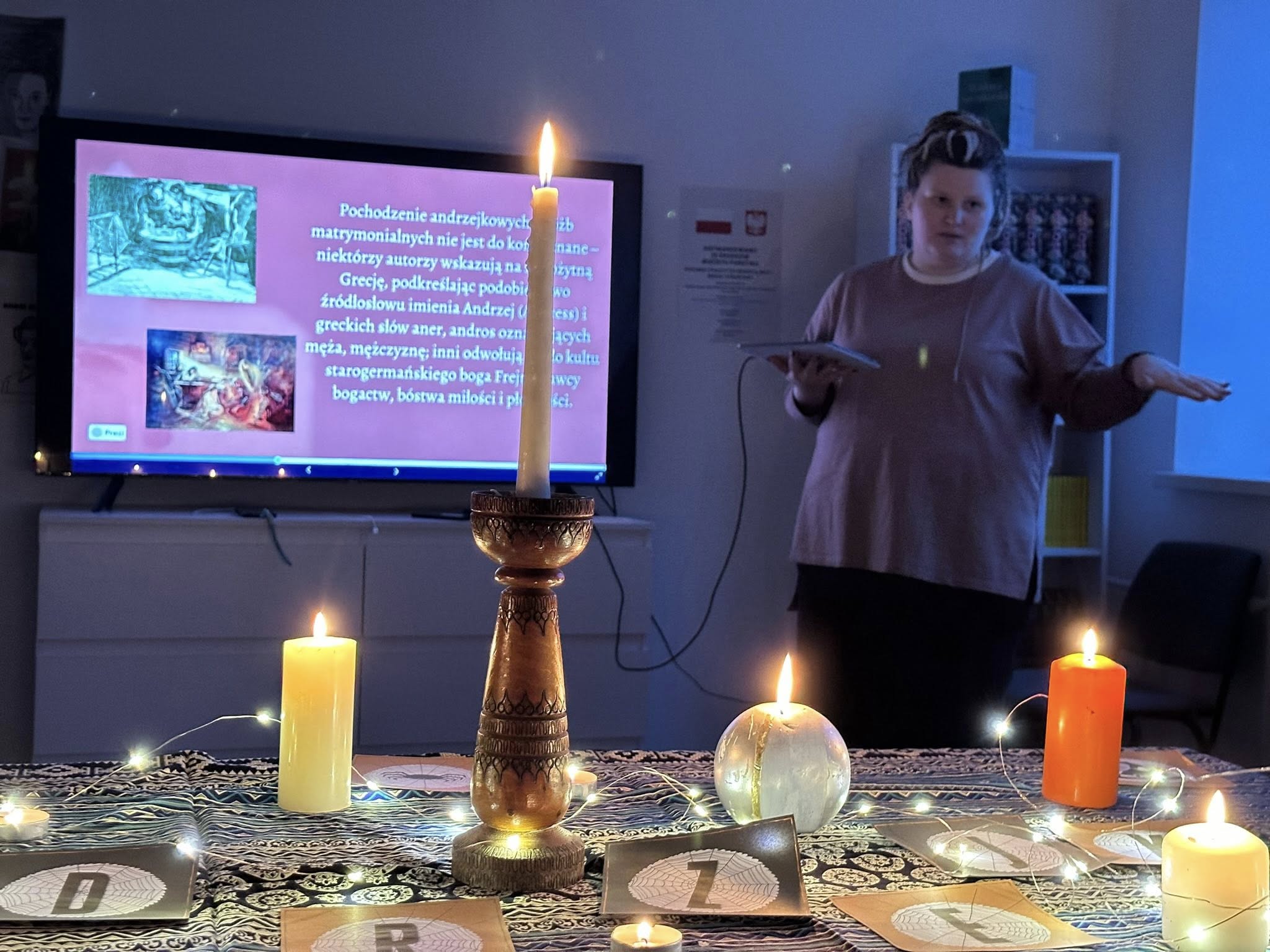 Наше тепле, затишне коло однодумців слухало розповідь пані Олени про давні способи ворожіння, що збереглися до сьогодні, про головні атрибути та символи Анджейок і навіть про те, яку роль у цих обрядах мали тварини. Ми торкнулися й сучасності — говорили про важливість таких традицій для збереження культури й передання її наступним поколінням.